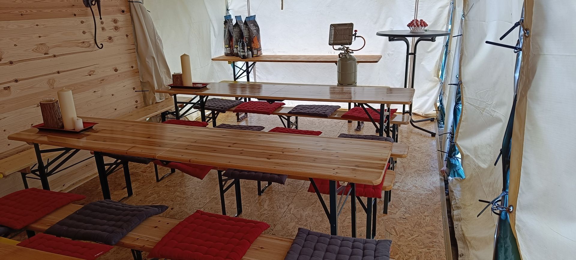 Getränke und Gläser sind da - falls du etwas trinken möchtest